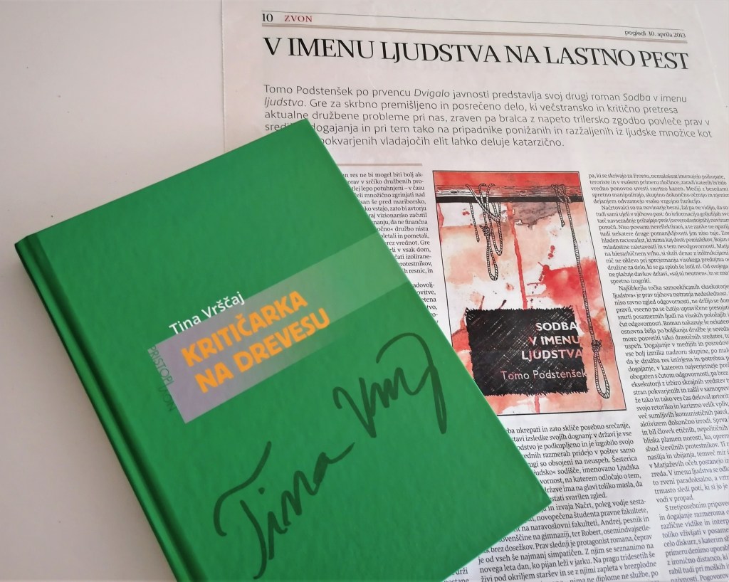 Pred kratkim je pri LUD Literaturi v zbirki Novi pristopi izšla knjiga Tine Vrščaj Kritičarka na drevesu. Med izborom avtoričinih kritik sodobne domače literarne produkcije je tudi zapis o romanu Sodba v imenu ljudstva (Droplja, 2012), ki je bil kasneje nominiran za nagrado kresnik za najboljši slovenski roman leta.