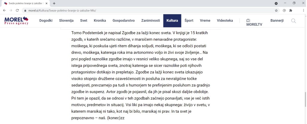 Tako pa o zbirki zgodb in dogodku poročajo na https://www.morel.si/Kultura/Sveze-poletno-branje-iz-zalozbe-Mis/ :