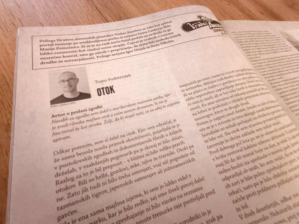 Na sveže prenovljeni strani Vrabca anarhista lahko preberete kratko zgodbo Otok, ki je bila sočasno objavljena tudi v reviji Kralji ulice.