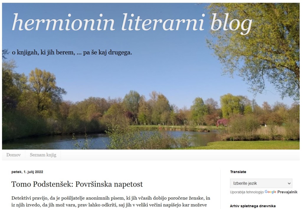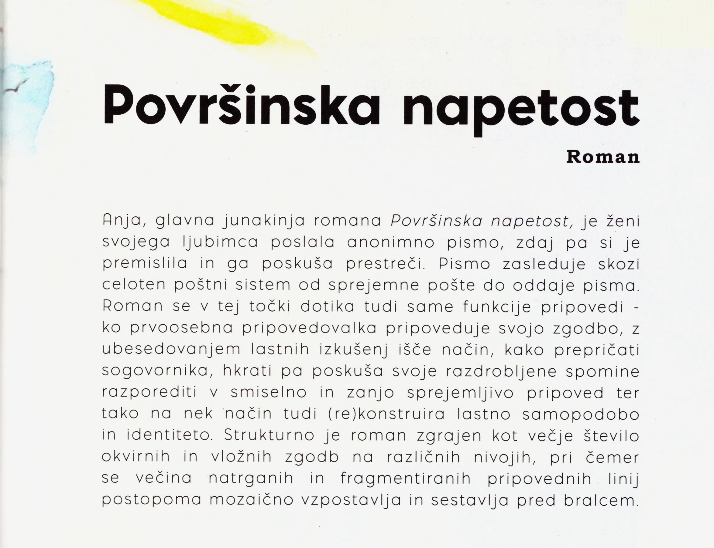 Celoten zapis o romanu Površinska napetost (Litera, 2021) je na voljo na Hermioninem literarnem blogu: