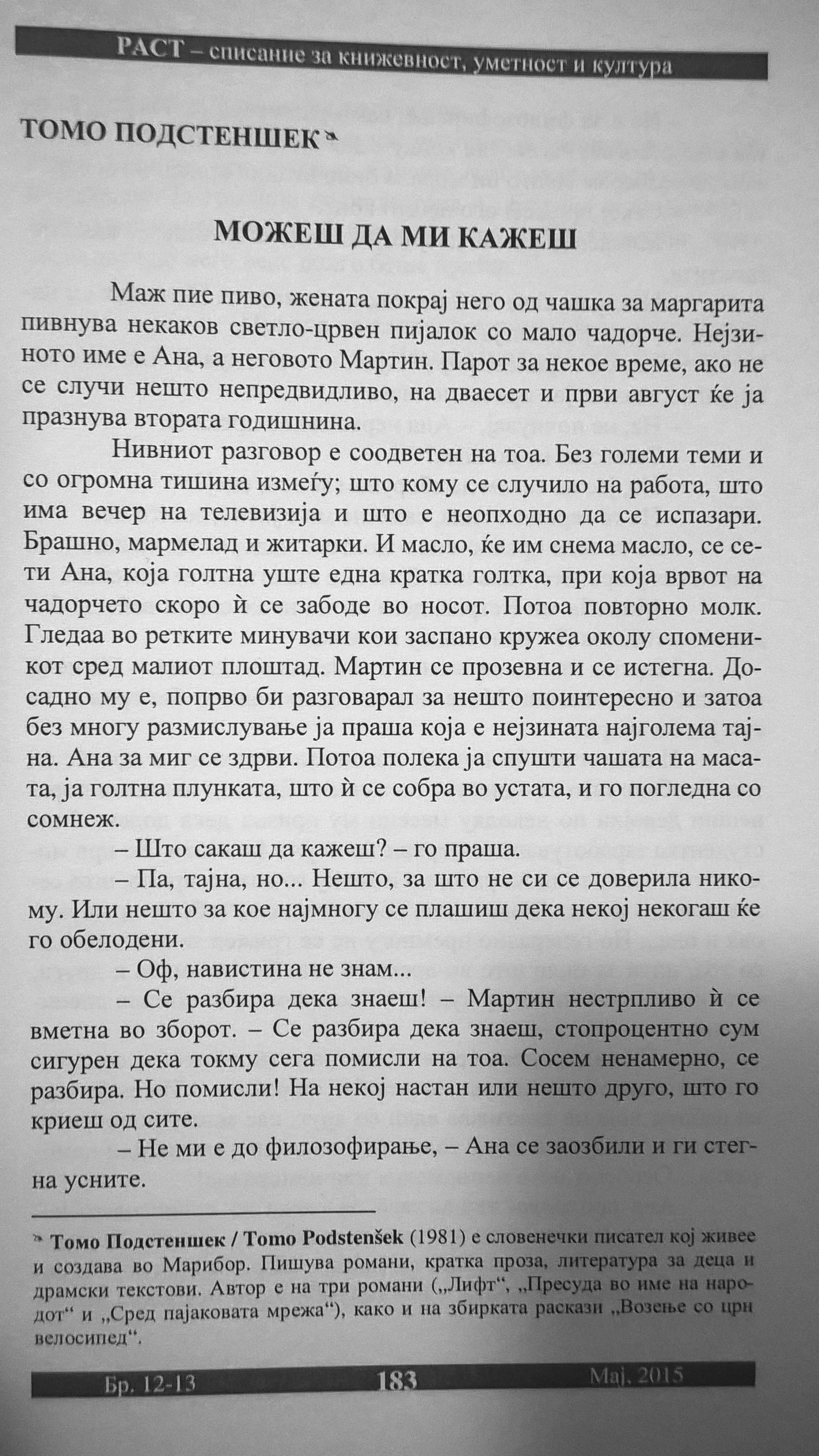 31. septembra popoldan bodo v centru Novega mesta potekali pogovori z nominiranci za nagrado “novo mesto”, na internetni strani revije Rast pa je že objavljen povzetek julijskega pogovora z Matejem Bogatajem ob razglasitvi nominacij na Vodnikovi domačiji: